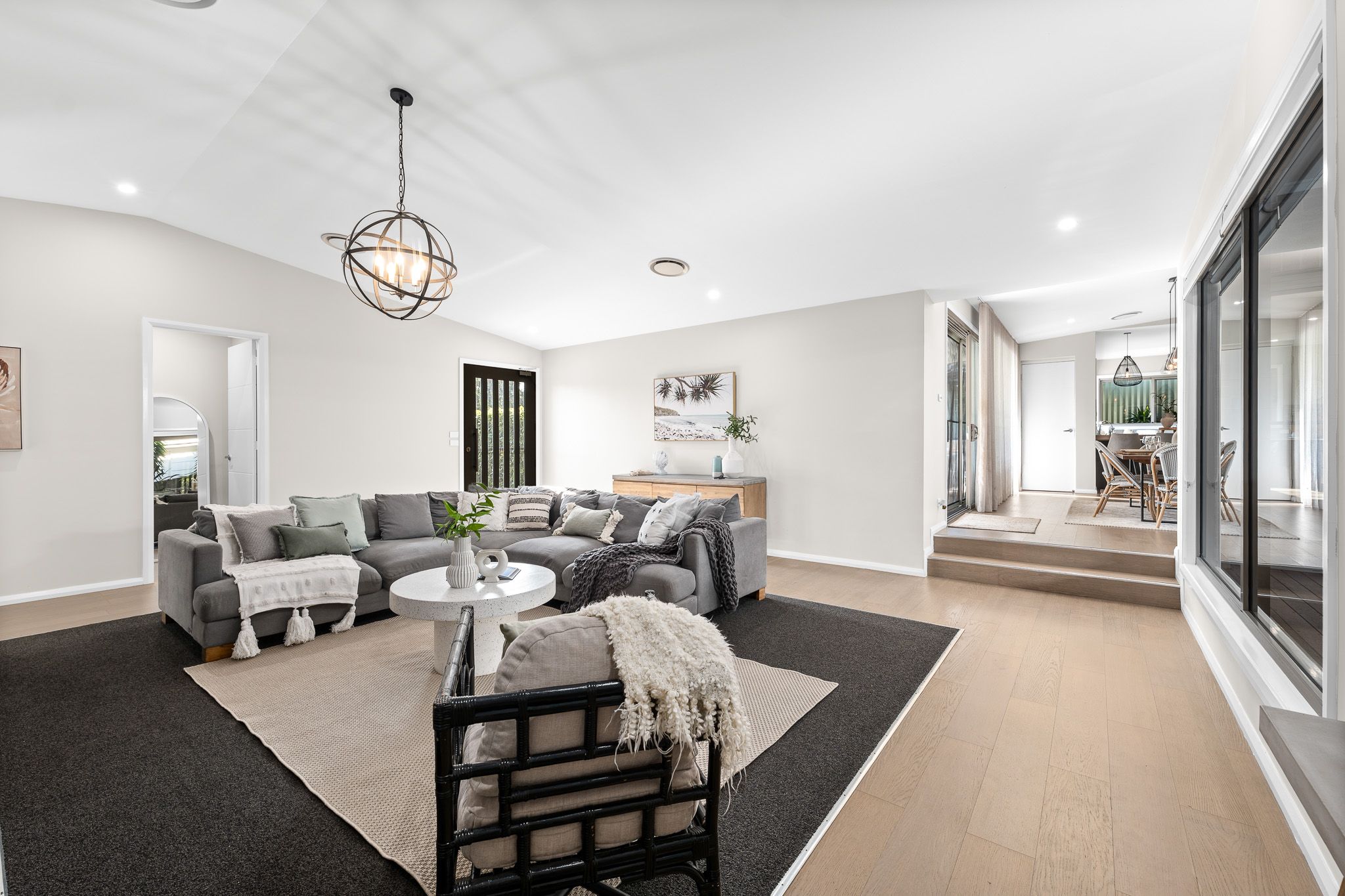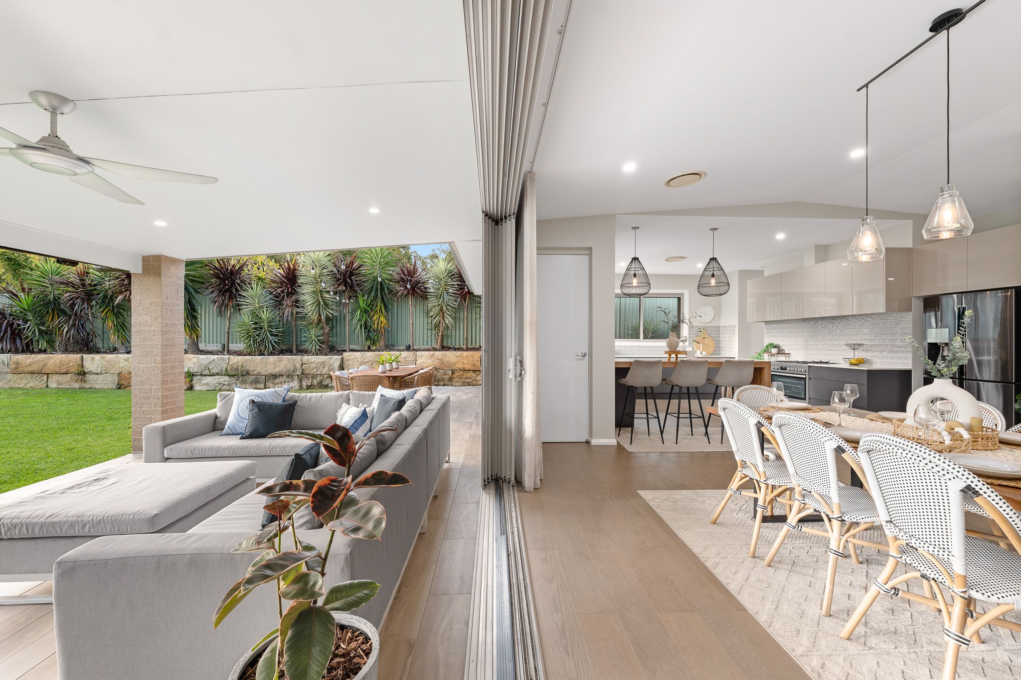 • The home is designed with an emphasis on space, featuring high ceilings that enhance the light and airy feel of every room.