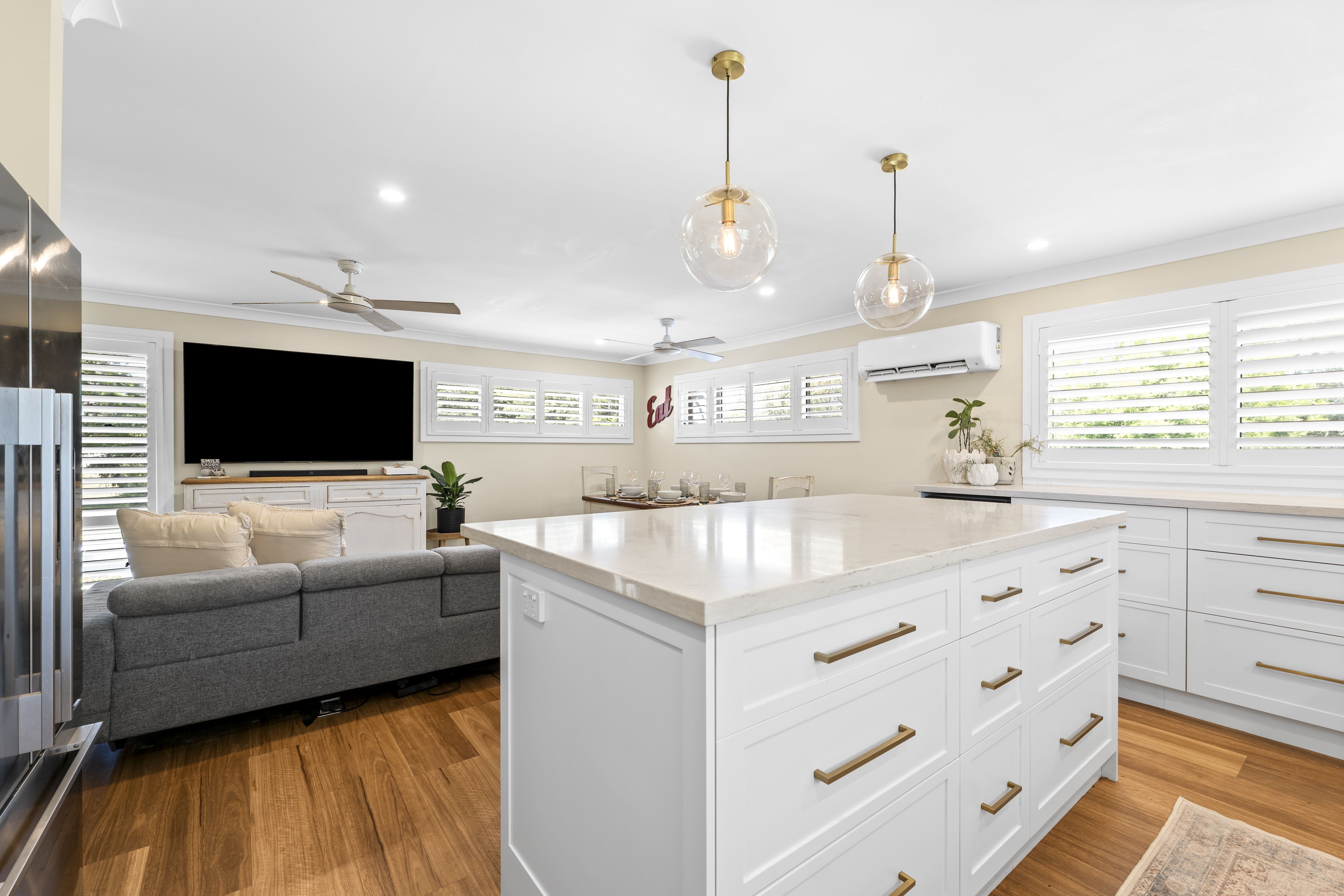 • Beautifully renovated kitchen with quality pyrolytic oven, induction cooktop, stone benchtops and island bench.