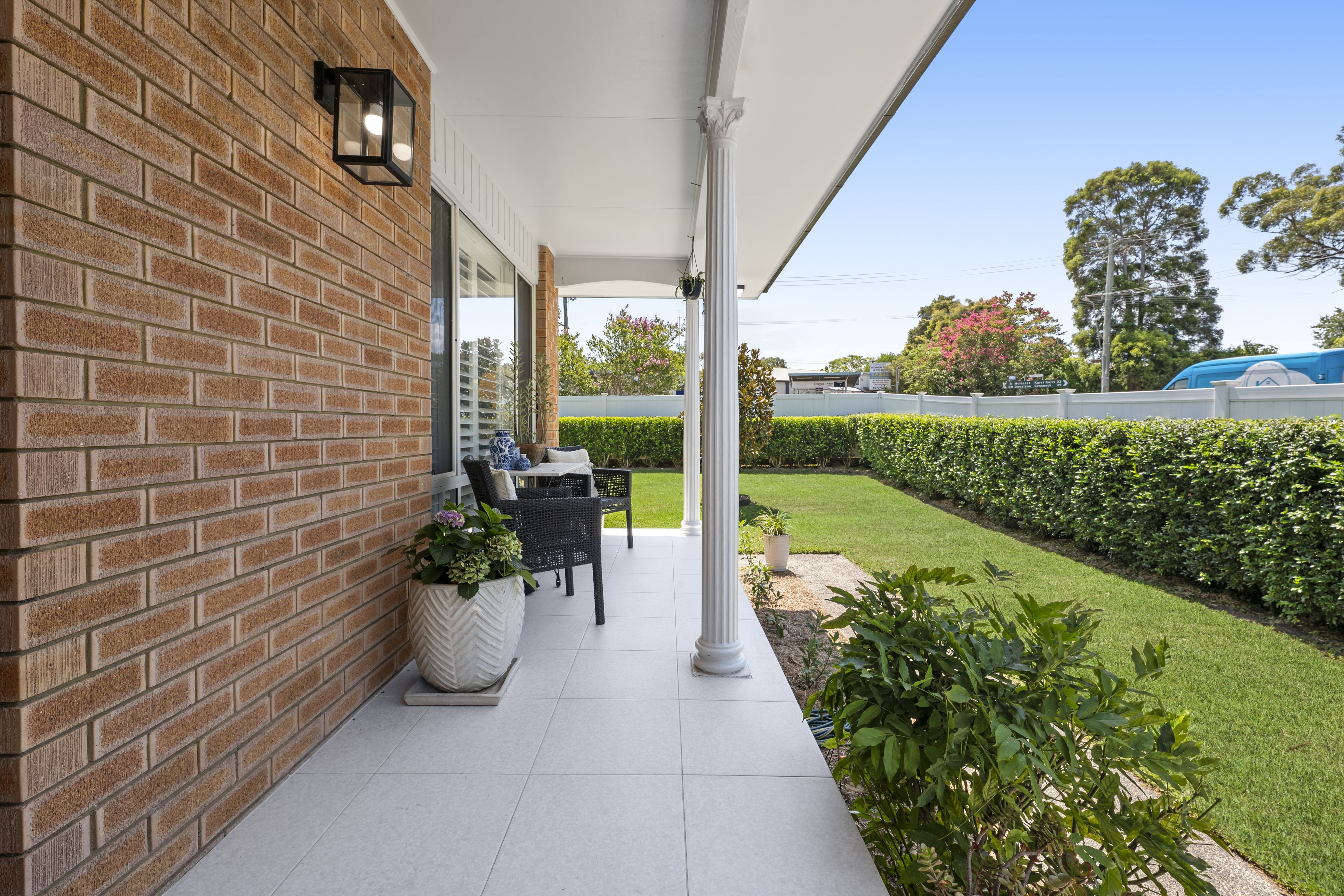 The secure and private front yard, complemented by lush hedges, provides a safe space for children and pets to play, while the spacious backyard offers endless opportunities for outdoor gatherings and relaxation.