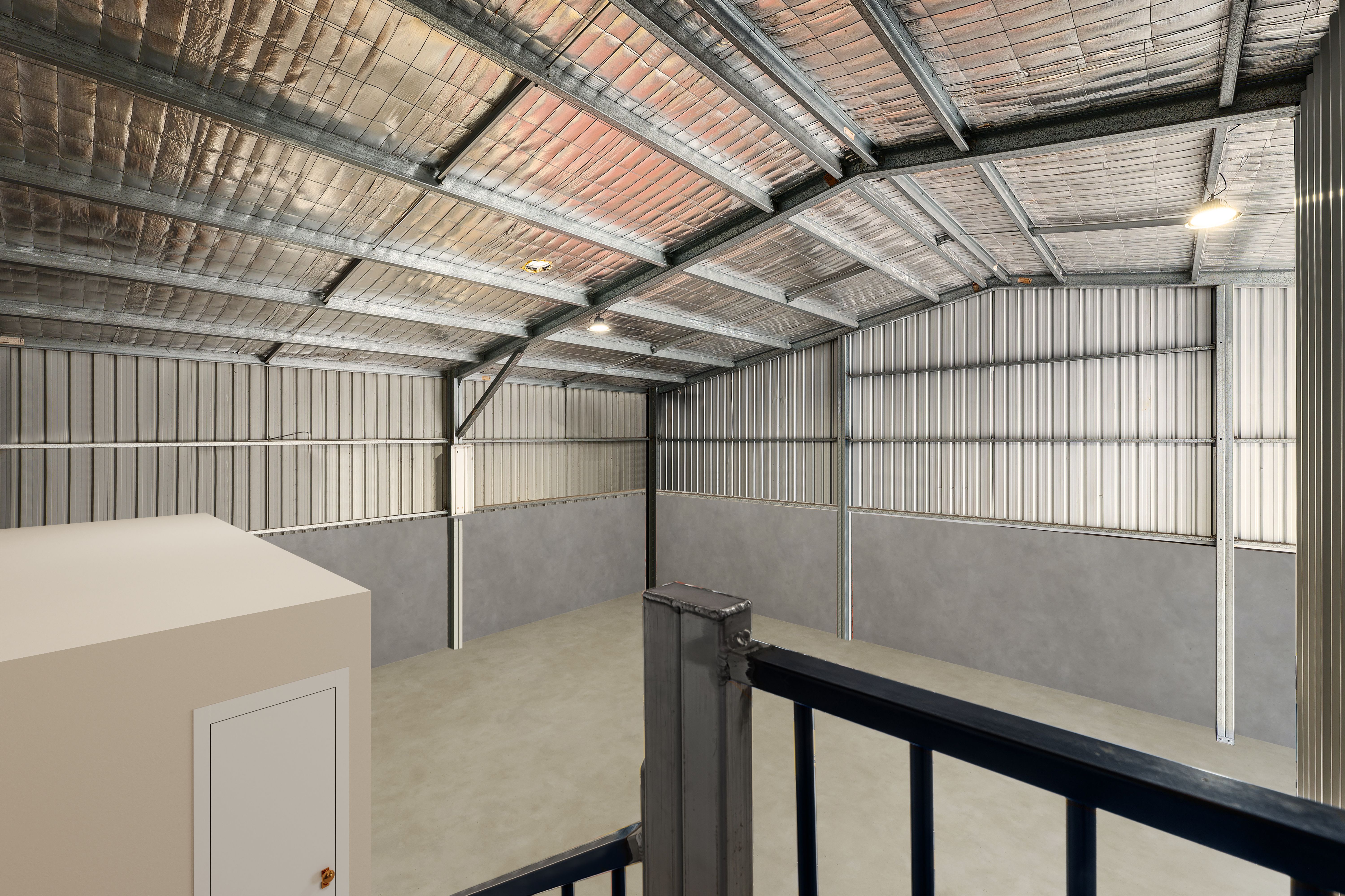 • Integrated Mezzanine Floor: Dedicated space perfect for a private office, administration area, or additional storage.